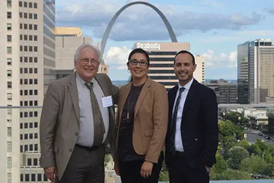 • UML Asst. Prof. of Nursing Mazen El Ghaziri, right, SLU Assoc. Prof. Lisa Jaegers, center, and UConn Health Prof. Martin Cherniack in St. Louis in 2017