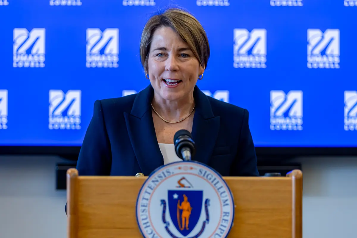 The announcement was made at UMass Lowell with Governor Healey, Lieutenant Governor Driscoll, Congresswoman Lori Trahan, Lowell City Manager Thomas A. Golden, Jr., University of Massachusetts President Marty Meehan, UMass Lowell Chancellor Julie Chen, UMBA Executive Director Barbara Kroncke, and Draper President and CEO Jerry Wohletz.