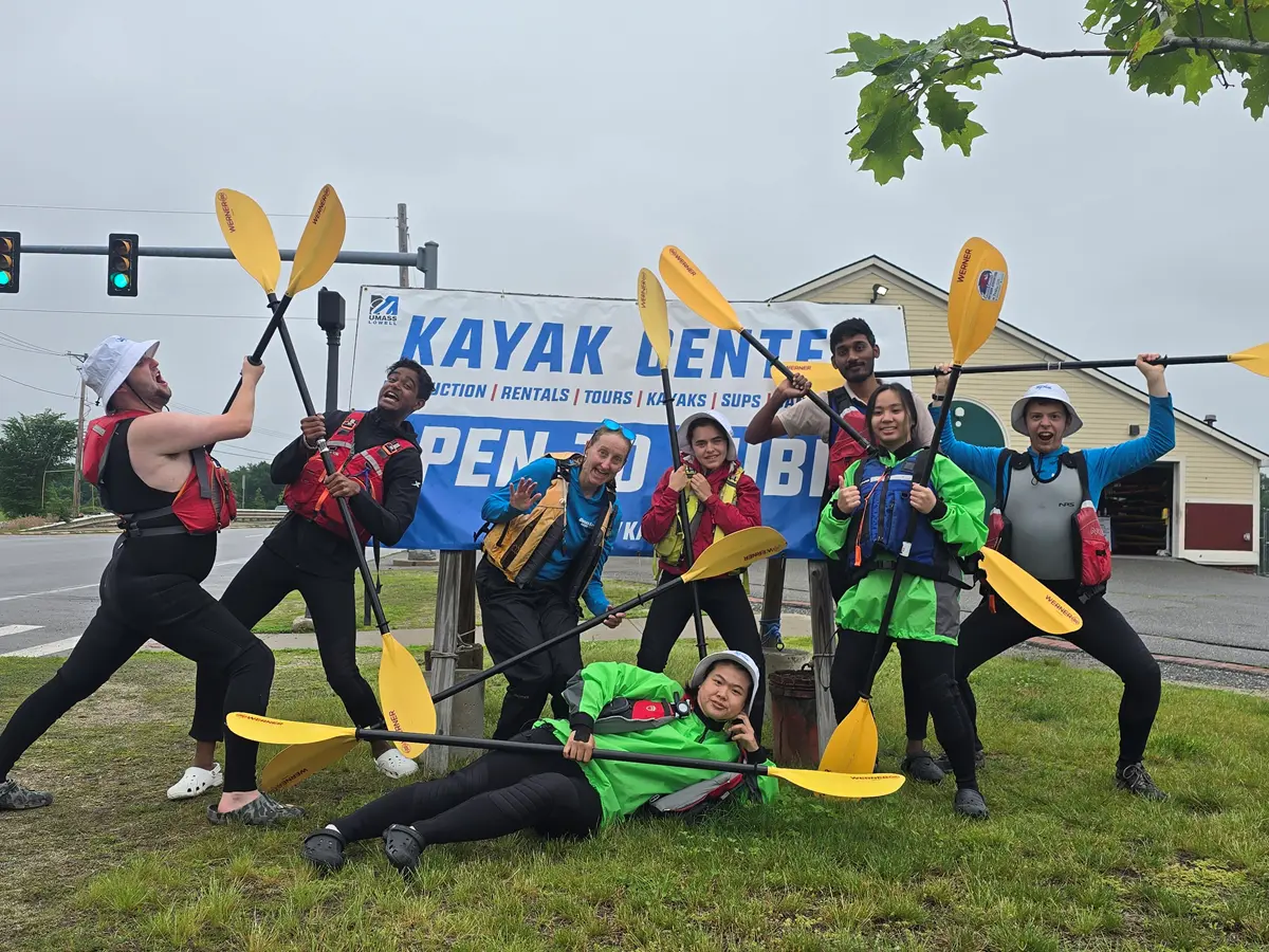 The UML Kayak Center opens in mid-June, 2026! Join us for regular kayaking by yourself or with friends! More information can be found on the Kayak Center website.