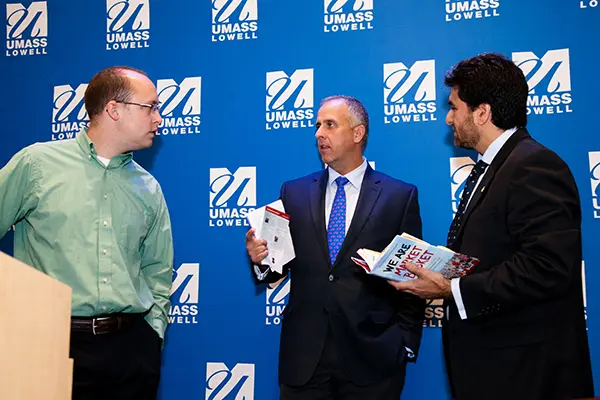 The book’s co-authors, Lowell Sun reporter Grant Welker and Drexel University Assoc. Prof. of Marketing Daniel Korschun, visited University Crossing to discuss the story with more than 100 community members and students as part of the Lunchtime Lecture series, co-sponsored by the Moses Greeley Parker Lectures and Office of Community Relations.