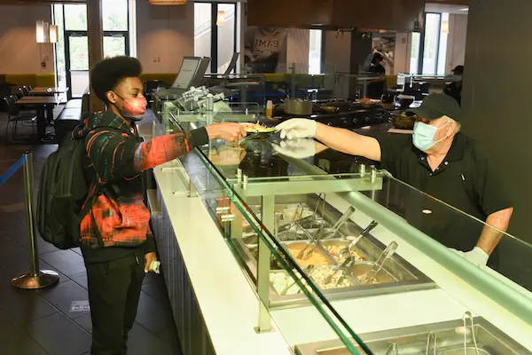 “I was very grateful for the students,” says Jirair Derkrikorian, operations director for University Dining, which is managed by Aramark. “They followed all the policies — wearing masks, sitting six at a table, max — and bought into the program, which made it easy for us.”