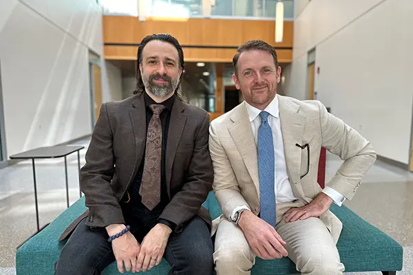 Philosophy Chair Nicholas Evans, left, and Criminology Assoc. Prof. Neil Shortland have been awarded $4.2 million in defense grants for research on AI.