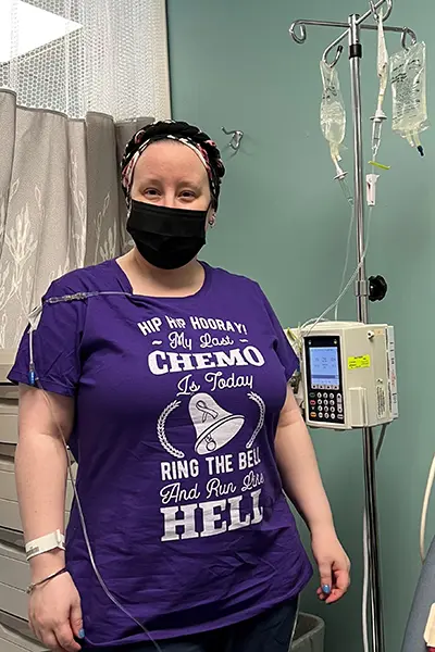 Lawson on her last day of chemotherapy at Southern New Hampshire Medical Center.