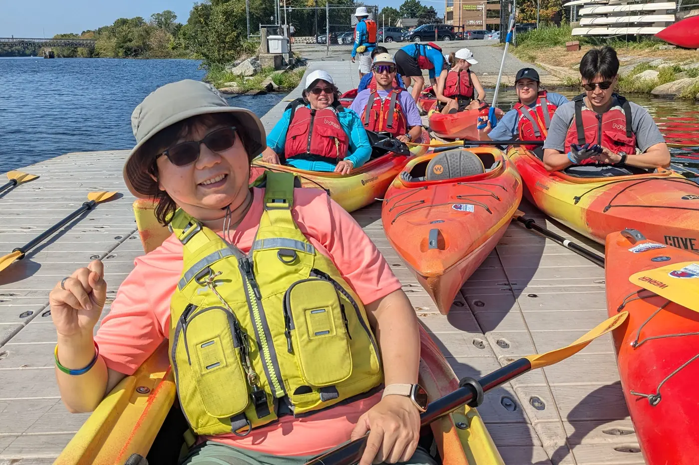 Plastics Engineering Assoc. Prof. Wan-Ting (Grace) Chen, left, seen here participating in a Merrimack River cleanup with her research team last fall, was awarded a $360,000 Early Career Proposal grant from the U.S. Army Research Office to study how freshwater biofilms affect the breakdown of plastics.
