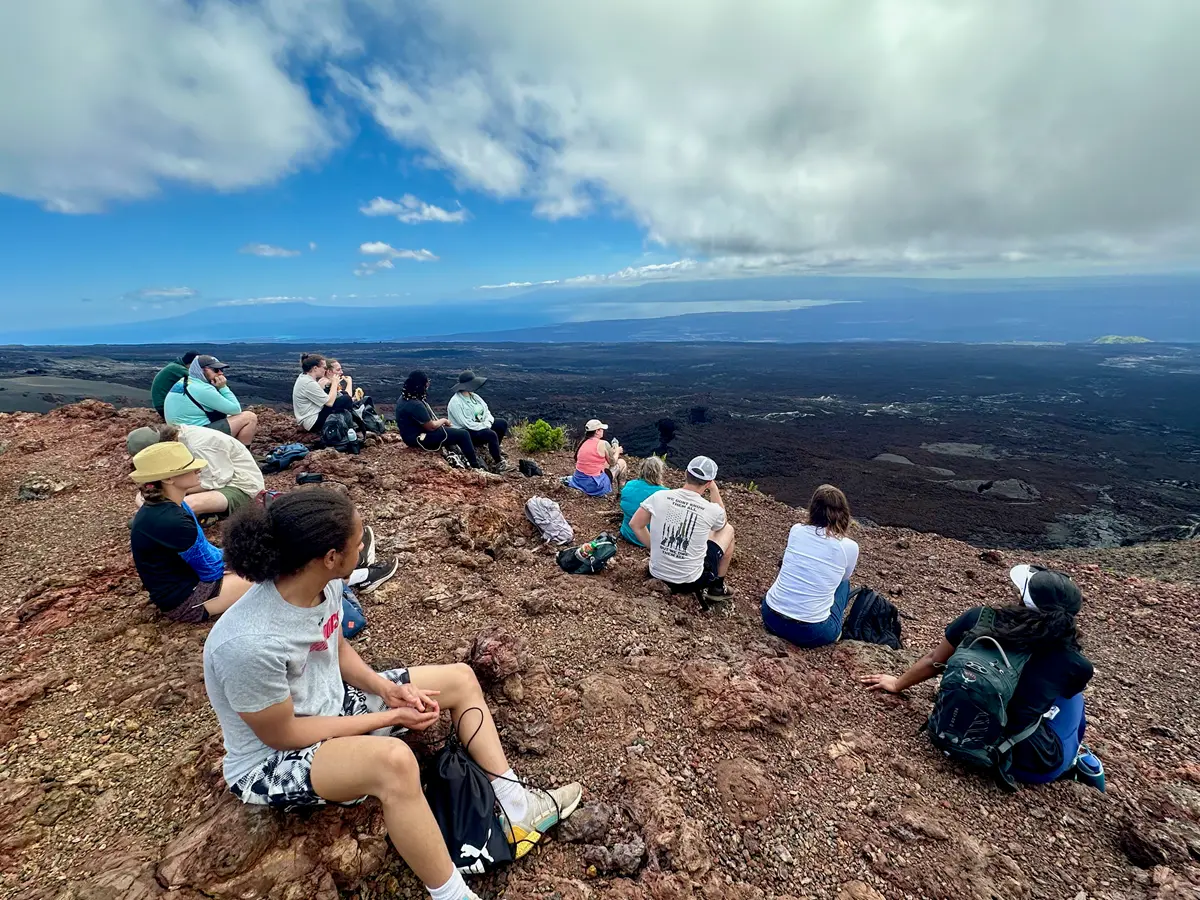 Students enjoy the view from the rim of the Sierra Negra volcano, the second largest caldera in the world.
