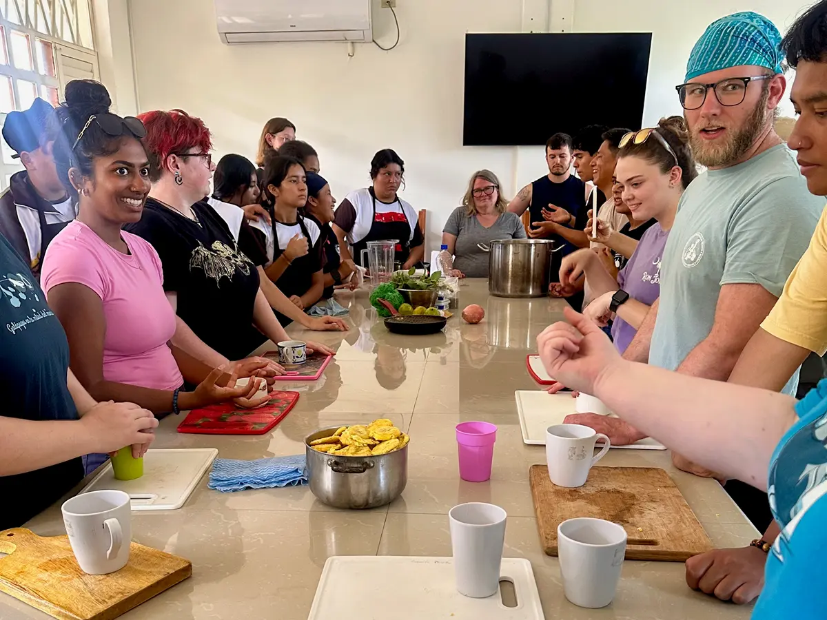 Kennedy College of Sciences students participated in a cooking class with local students in the Galapagos.