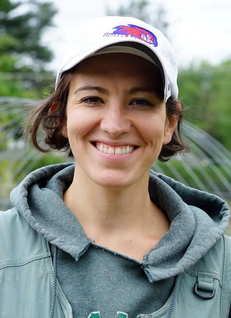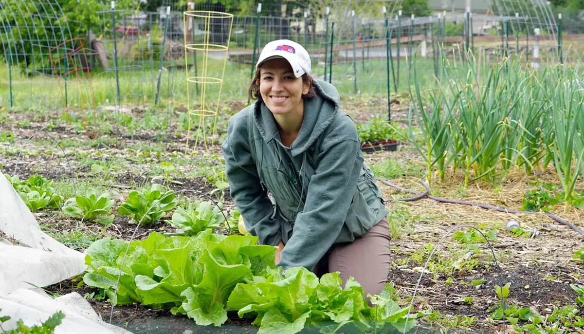 Surrounded by row upon row of peppers, tomatoes, cucumbers, arugula and more on her half-acre backyard farm in Dracut, Massachusetts, Emily Makrez ‘07, ’09 can barely get through a sentence when talking about her past career as a sales operations manager.