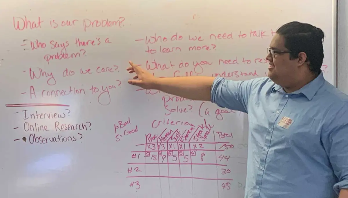 As a junior, Palma is preparing for full-time student teaching by presenting lessons in an Introduction to Engineering Design class at Lowell High School. His host teacher, Megan Pederson, taught him in the same class when he was a student at Lowell High, just a few short years ago.