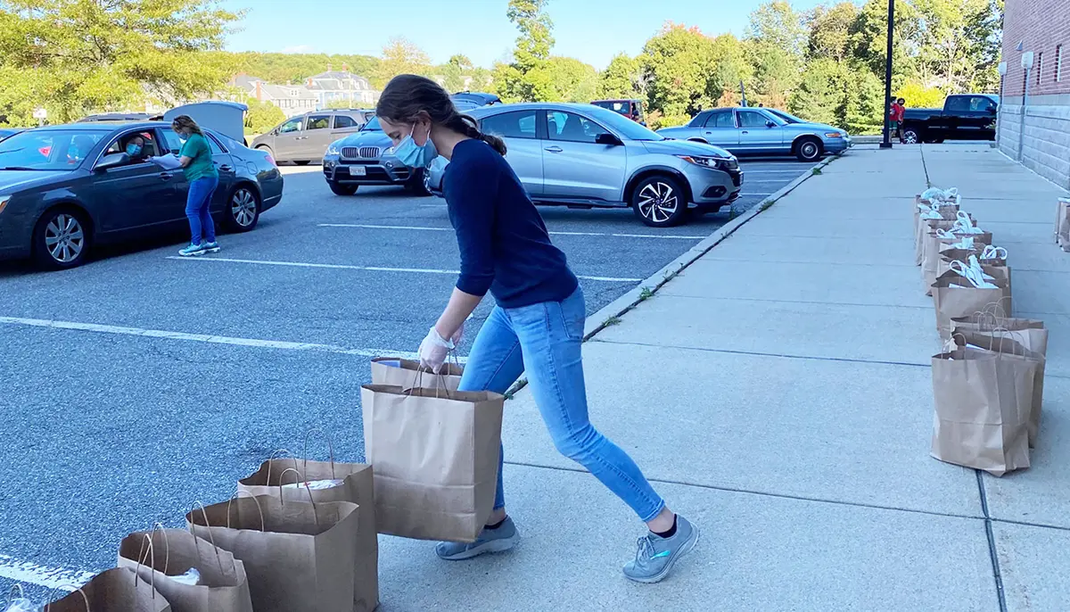 She also did a food service management internship for credit in the Waltham, Massachusetts, public schools – both in the cafeterias, which serve the few high-needs students who come to school most days, and by helping with weekly, bulk distribution of breakfasts and lunches for families whose children are studying online at home because of COVID-19.