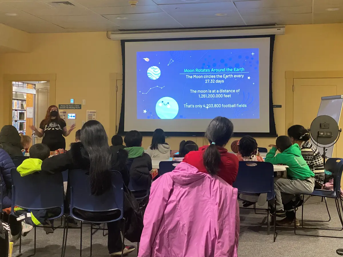 - April, 2024: On April 6, Julie Sage and other LoCSST student volunteers travelled to the Burlington Public Library to present a space program including introduction to the solar eclipse, viewing of 3D models, and children did a related craft. There was also a solar scope outside for viewing. See the Solar Eclipse Prep for Kids calendar.